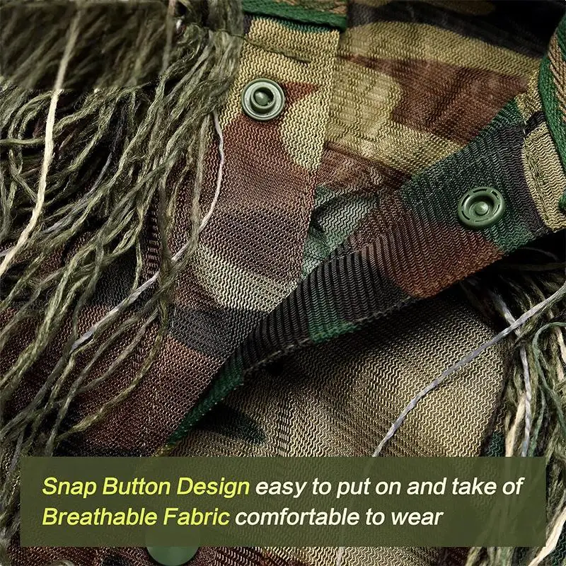 Step up your game with our hunting ghillie suit, designed for both avid hunters and military professionals. This suit features an innovative camouflage pattern that blends seamlessly into various environments. Made from lightweight materials, it offers comfort and flexibility, making it ideal for long hours in the field.