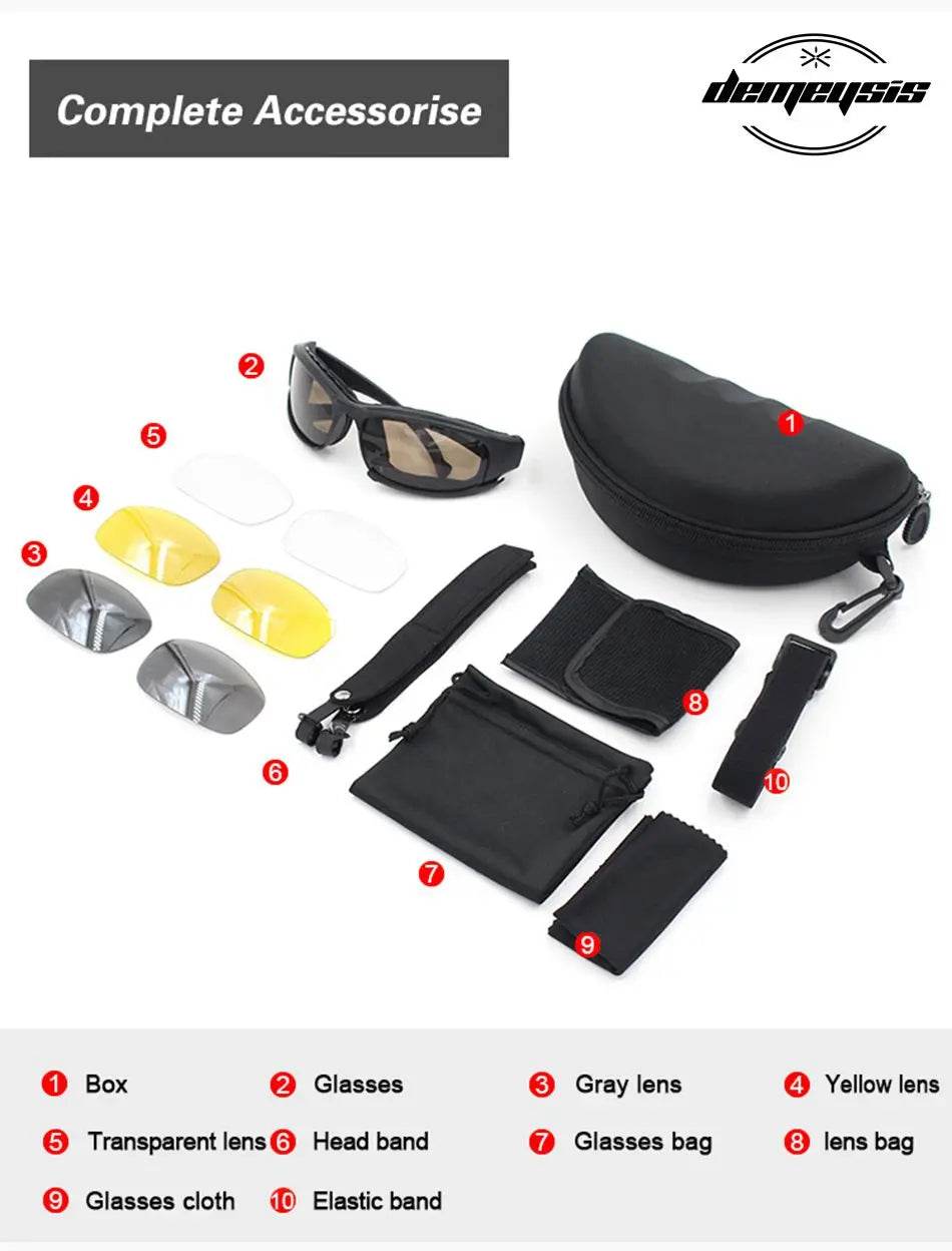 Tactical Glasses Lens: 4 lens: Grey, Yellow, Transparent, Black
